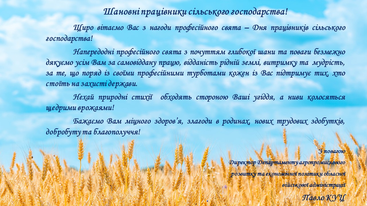 В переддень професійного свята дякуємо усім працівникам сільського господарства за невтомну працю!